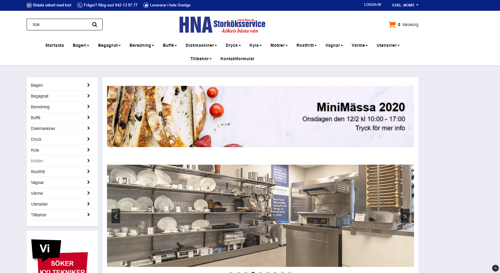 HNAs hemsida var en Webbshop med 12000-15000 artiklar som krävde mycket underhåll av nya produkter, priser, bilder & Texter.
